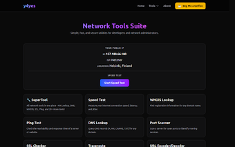 이 프로그램은 공용 IP 주소를 검색하고, MX 레코드를 확인하며, 철저한 웹사이트 검사를 수행하는 등의 기능을 포함합니다. 이러한 도구는 네트워크 문제를 해결하고, 웹사이트 성능을 평가하며, 안전한 연결을 보장하는 데 유용합니다. y4yes를 사용하면 사용자는 브라우저에서 직접 네트워크 관리 작업을 간소화하여 생산성과 효율성을 향상시킬 수 있습니다.